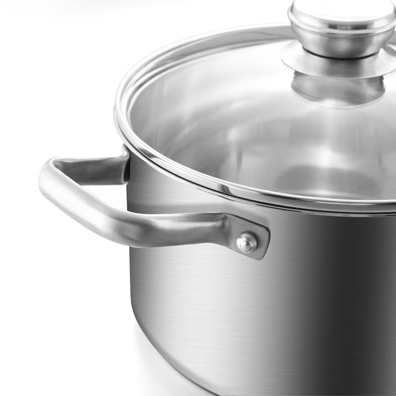 1.精选奥氏体304高品质不锈钢,不惧酸碱剐蹭,三层加厚复合锅底,导热迅速均匀,节能省时。