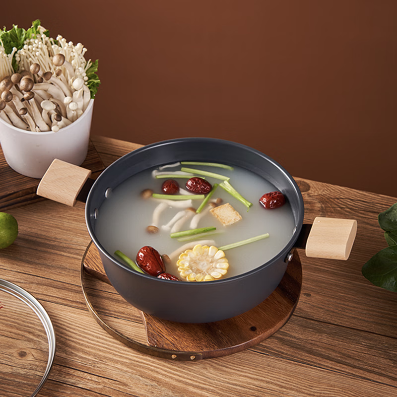 1.实木手柄表面纹理细腻 隔热提升烹饪安全性;