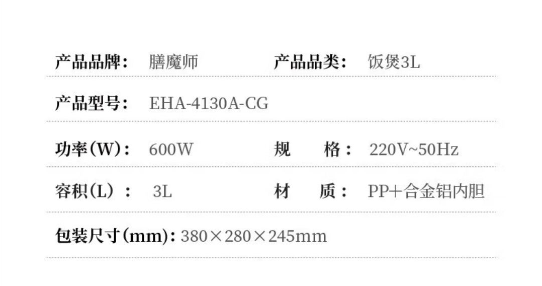 1、膳魔师 电饭锅(电饭煲)香槟金EHA-4130A-CG 3L 600W