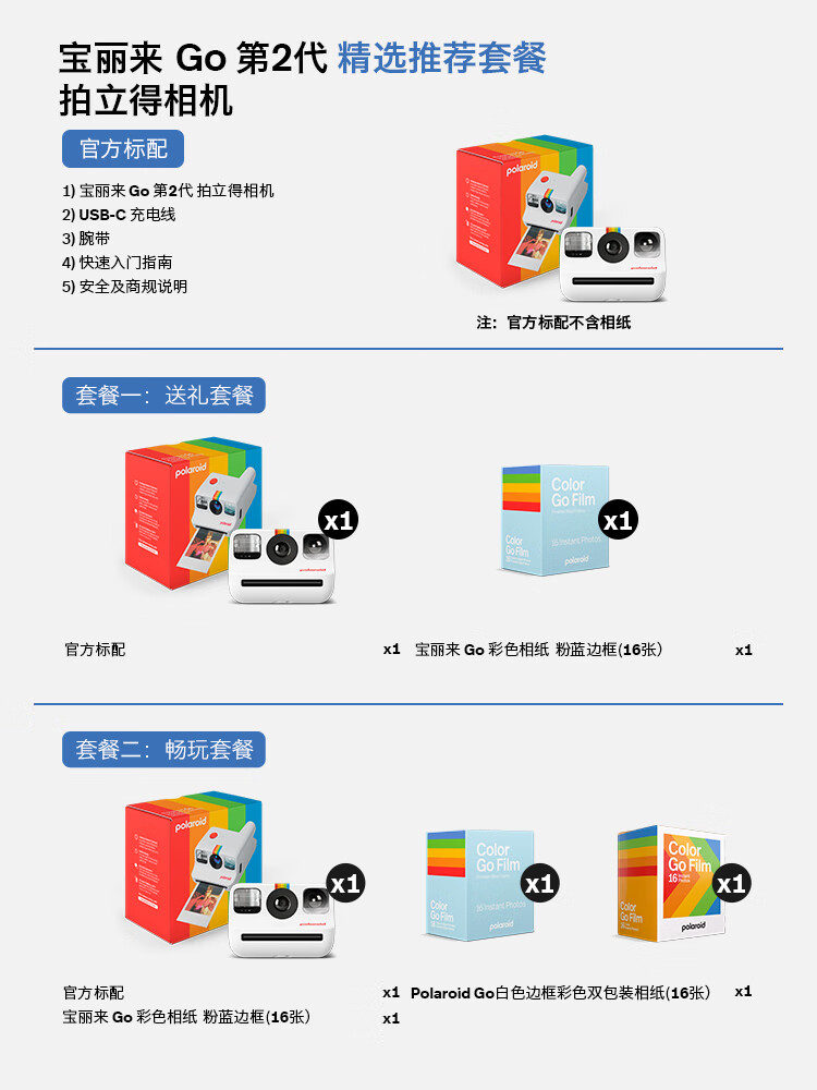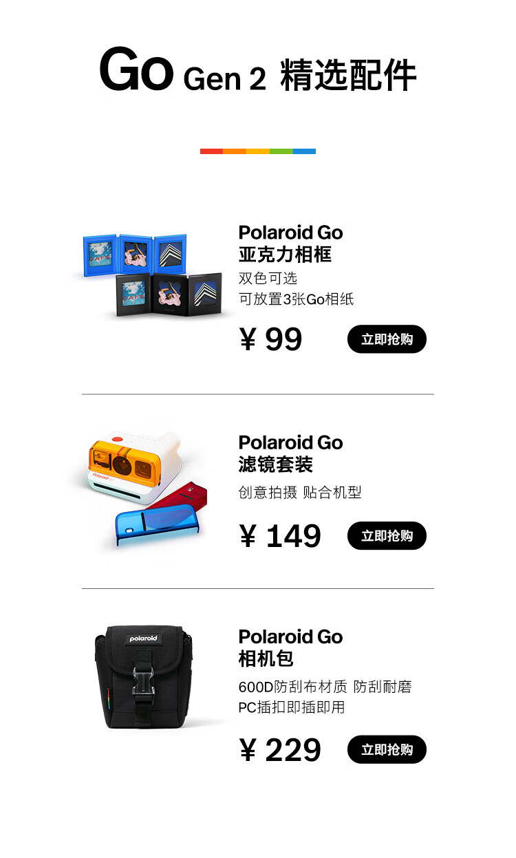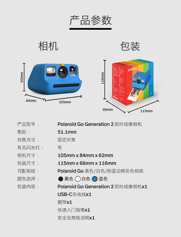 宝丽来 GO 第 2 代相机常备颜色 黑 白 红 蓝 紫