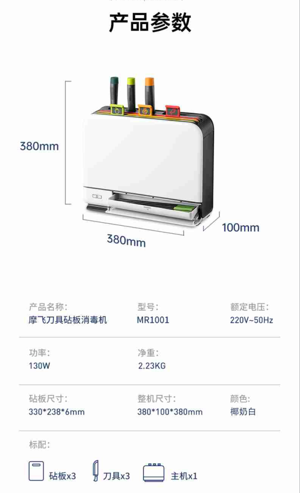 摩飞 二代消毒刀架刀具消毒一体机砧板筷子消毒机MR1001
